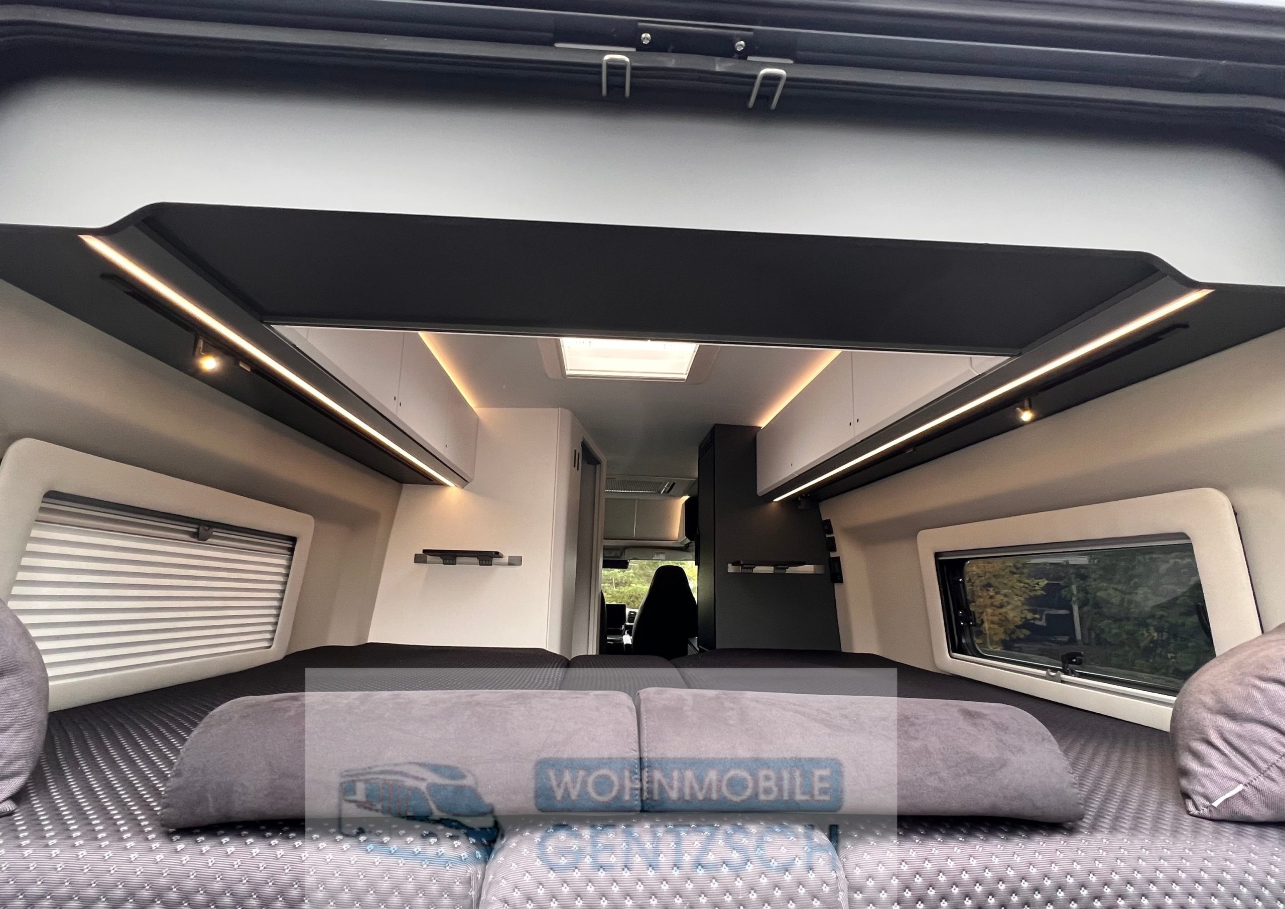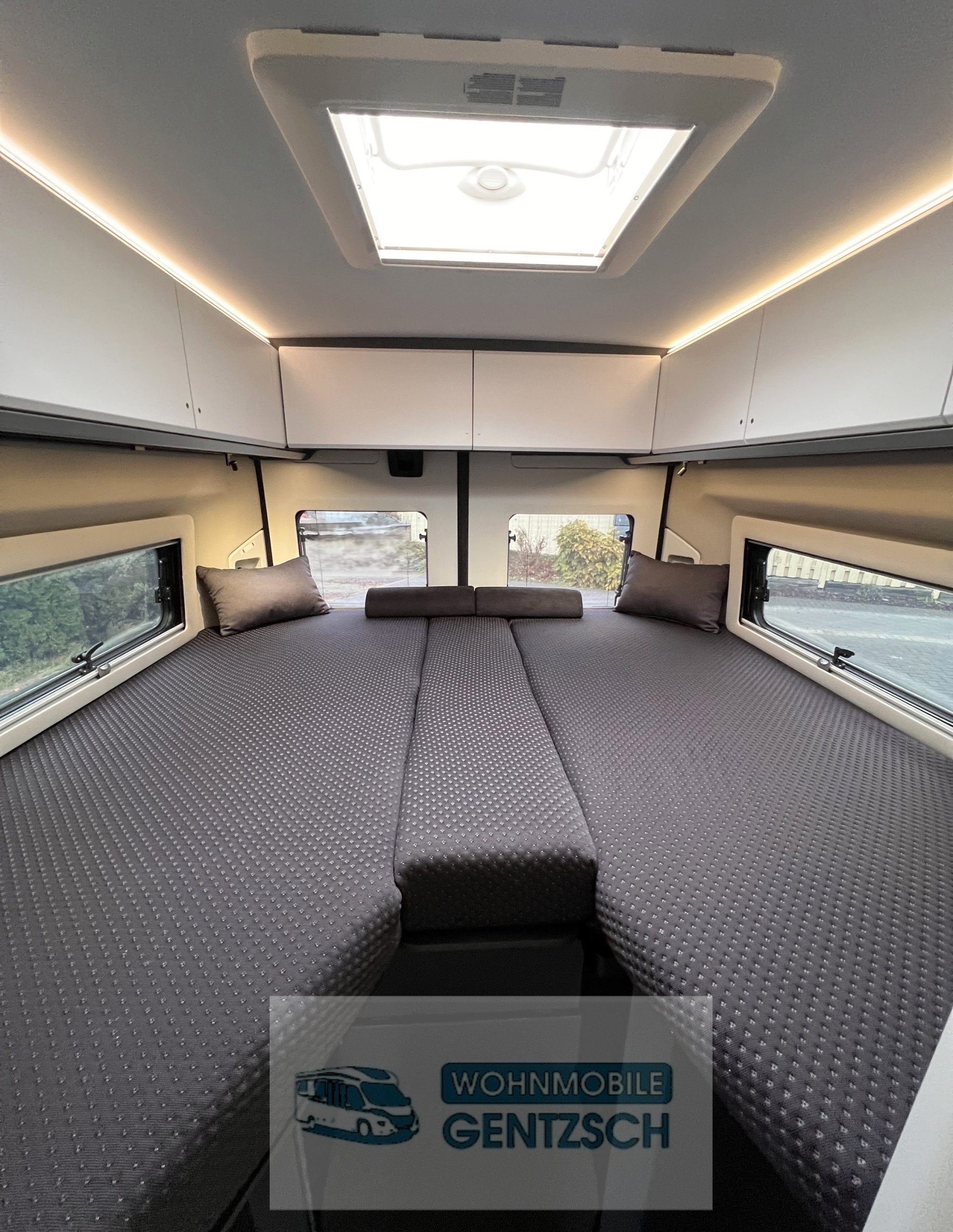Funktionalität Betten: Der Grundriss verfügt über Längsbetten (ca. \(1,95\) m und \(1,90\) m), die auch zu einem Bett umgebaut werden können.