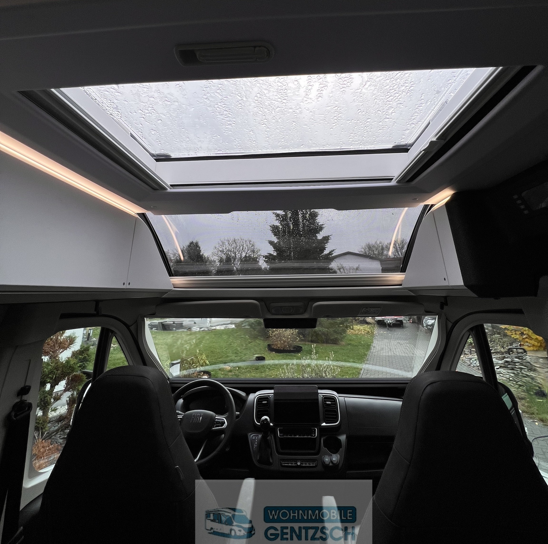 Wohnraumkonzept: Das Adria Panorama-Dachfenster sorgt für viel Licht und Kopffreiheit, insbesondere im Fahrerhaus.